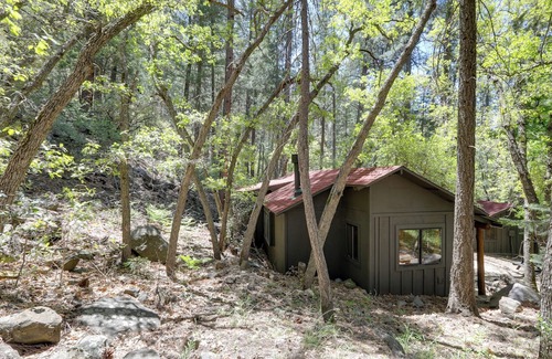 Channel your inner explorer at this 2-bed, 1-bath, pet-friendly Sedona vacation rental! Tucked away just 9 miles north of downtown, this glamping getaway offers unique bonus perks, like an on-site natural swimming hole and hiking trail. After long, active days spent roaming Devil's Bridge or splashing in Slide Rock State Park, come home to cozy up by the fireplace or dine by the creek. You'll love the convenience of on-site activities in a nostalgic campground-style setting.
