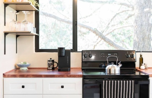 This spacious casita, filled with natural light and high ceilings, feels like a treehouse! The brand-new renovation includes high-end touches for a relaxing stay.