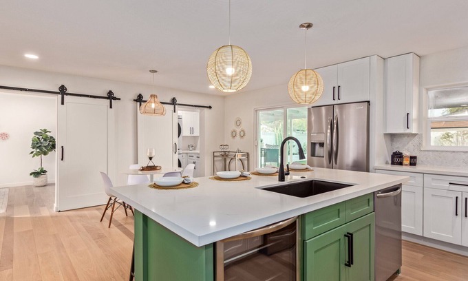 This unique home offer four bedroom, three full bathrooms, a split floor plan and plenty of indoor and outdoor space to sprawl. The master bedroom is to the right of the great room and provides a quiet retreat complete with a spa-like en-suite bathroom and walk in closet. To the left of the great room, discover a junior master suite with private access to the back patio, as well as two additional bedrooms and a hall bathroom.