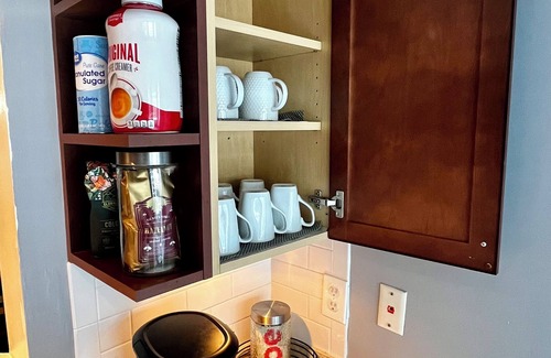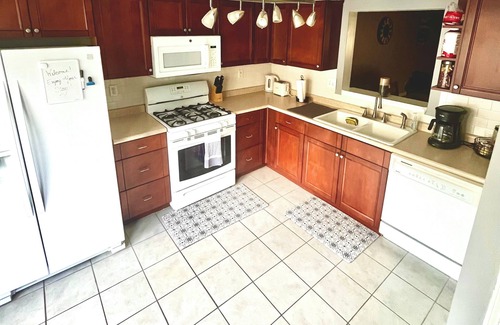 This charming townhome has a nicely sized, comfortable living room space and dining area, perfect for friends and family to gather. Easy access to a fenced in patio and backyard. A cook-ready kitchen with a coffee station. Two large bedrooms with plenty floor space for air mattresses, which the host has provided. Both bedrooms have en-suite bathrooms for privacy and convenience. There’s a washer and dryer upstairs available for use, along with extra bedding and bath towels. This private access home also has two designated parking spaces directly in front of the property.