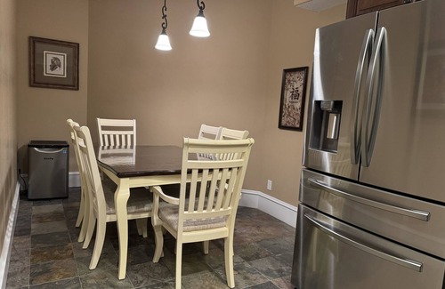This is a charming and very clean apartment in our basement. Bountiful of natural light in the living room area and bedrooms. It boasts 2,400 square feet of space, high ceiling, and a secluded backyard, features 2 queen beds and 1 bunk bed, perfect for a tranquil getaway. With amenities like large screen TV with great surround sound system, high speed guest WIFI service via comcast, reclining leather couches, stylish full-sized kitchen, ping pong and air hockey tables, gas fire pit in a natural tree grove with hammocks, guests can relax and unwind in comfort. The 2 full bathrooms are equipped with showers for convenience. Enjoy your time in Highland at our amazing place.