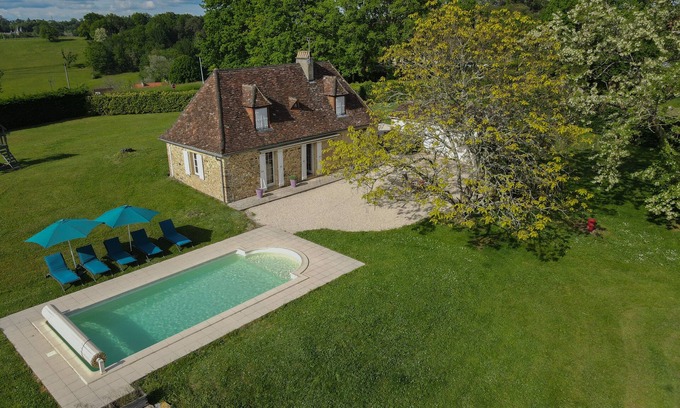 Charming stone house with private heated pool and panoramic views is located in Rouffignac-Saint-Cernin-de-Reilhac. Charming stone house with private heated pool and panoramic views provides accommodation, featuring Parking, Barbecue/Outdoor Cooking, Kitchen, among other amenities. This House features Parking, Barbecue/Outdoor Cooking, Kitchen, to make your stay a comfortable one.