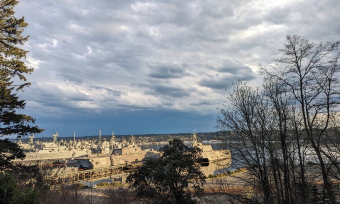 Tucked into the hillside of Navy Yard City, above Sinclair Inlet, lies a newly constructed, comfortable and cozy dwelling offering breathtaking sunrise views of the Puget Sound, Mt. Rainier, and several historic US Navy ships right outside your front door and windows.