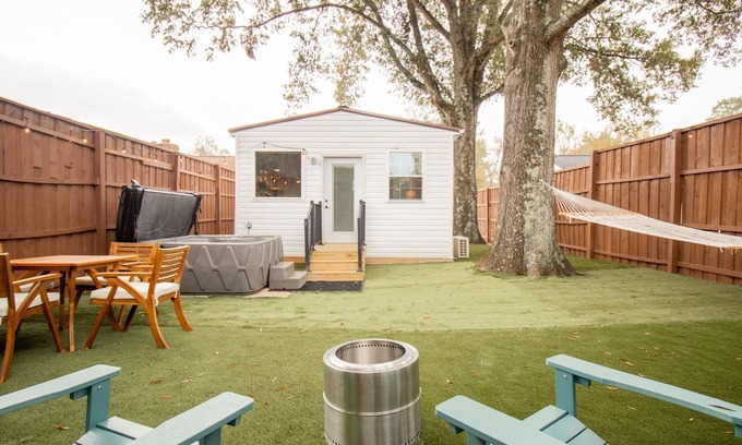 Unwind in the private outdoor area, complete with a hot tub where you can soak under the stars.