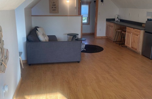 Please note that the stairway to the apartment is not suitable for those with mobility issues. Please inquire on option for small ski boat or fishing boat for nightly hook up inside garage. Entrance to studio is shown in exterior photo on backside of garage.