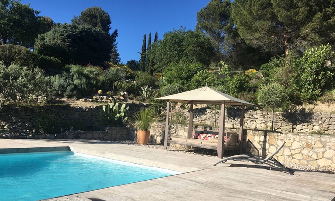 In a wooded property of 6000 m² in green zone, T1 of 28 m² completely independent of the villa owners, air-conditioned with a beautiful panoramic view of the Aix countryside.