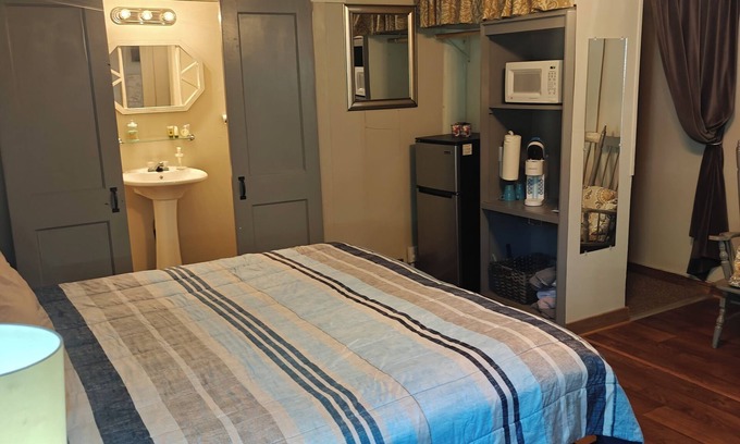 The bathroom features a shower and a hair dryer for your convenience. Nestled in a peaceful setting, this property is the perfect retreat for guests looking to unwind and relax. A great place to call homebase while you're away, we hope you enjoy your stay.
