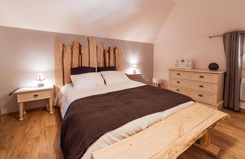 => This outbuilding is located in a property with garden, barn, residential building where the owners (Christelle and Alexandre) stay with their dog.
