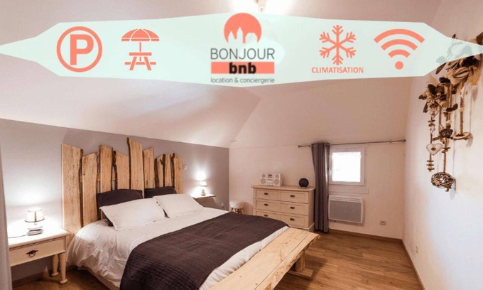 Charming T3 + garden + parking + common space is located in Bucheres. Charming T3 + garden + parking + common space provides accommodation, featuring Laundry, Air Conditioner, Bedding/Linens, among other amenities. This Apartment features Laundry, Air Conditioner, Bedding/Linens, to make your stay a comfortable one.