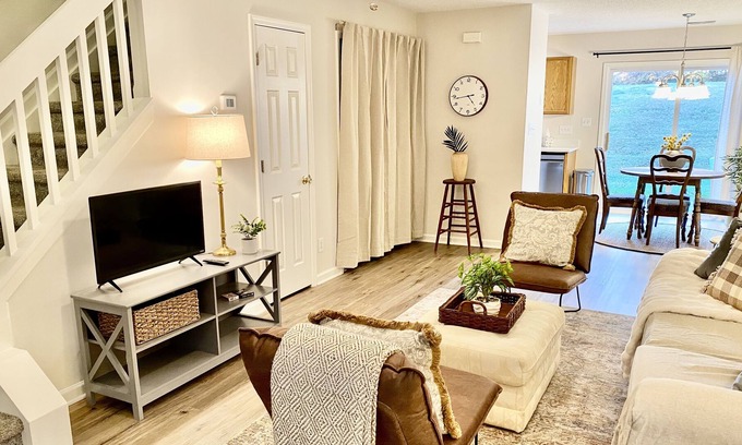 This newly renovated, professionally cleaned townhouse offers the perfect combination of beauty and convenience. Right off Hwy 40/85, nestled between nearby Elon University (13 mins) and Greensboro (20 mins).Tasteful decor, a fully equipped kitchen, fast wifi & outdoor seating lends to a comfortable stay. The king suite and high end mattresses ensure a great night sleep, and a professional housekeeping and management team will ensure you have a wonderful stay every time!