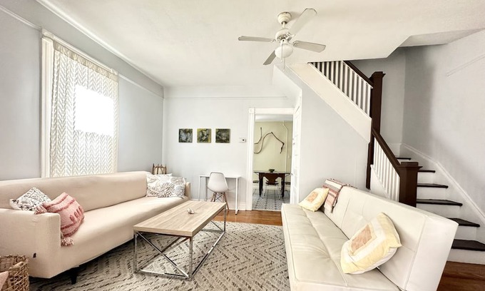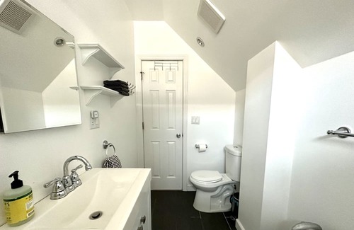 100-year old classic two story bungalow-style home with a completely renovated bathroom and many modern amenities. Five large rooms (eat-in kitchen, large living room, 2 large bedrooms, one large modern bathroom) with tasteful finishes like a stainless steel refrigerator, thoughtfully prepared with glassware, cutlery, serving and dining ware, wine opener and other essentials. Includes your own PRIVATE covered front porch and 50 sqft outdoor patio.