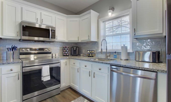 The kitchen area is equipped with numerous cooking appliances, any utensils you may need, and spacious countertops. If you want to take a break from dining in town at one of the many restaurants, then this is the kitchen for you.