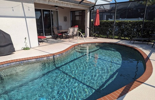 Enjoy the ultimate getaway at this beautiful 3-bedroom villa located in a secure gated community in Venice, Florida. Perfectly designed for comfort and relaxation, the villa features a solar-heated, screened-in pool with a serene pond view and a spacious lanai with a gas grill for outdoor dining. Inside, you'll find modern, open living spaces with a full kitchen, air conditioning, heating, and comfortable sleeping arrangements including a King, Queen, and Twin bed setup. Stay connected with high-speed WiFi and cable TV. Linens, towels, and all essentials are provided, and the home is lovingly maintained by the owner.