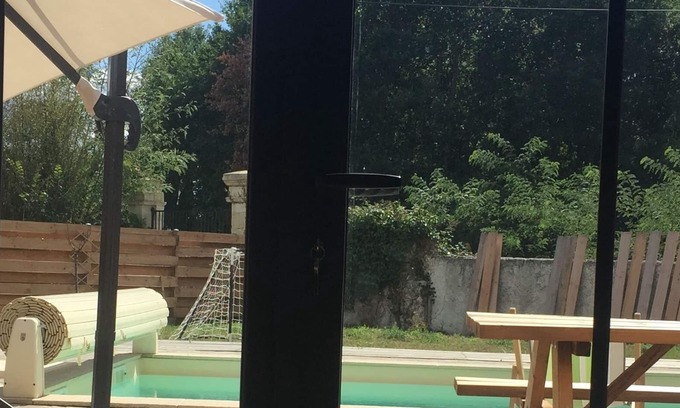 Our house, which can accommodate a maximum of 6 people, is composed of 3 bedrooms: Ch 1: 1 bed of 160, Ch 2: 2 beds 90 * 200 (additional child's bed possible), Ch 3: 1 bed 90 * 200, 2 bathrooms , a laundry room, 3 toilets, a living room, a fully equipped American kitchen, all overlooking a garden with terrace and 4mx8m swimming pool where you can bask on sunny days!