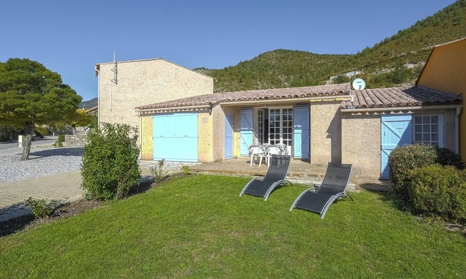This inviting villa in Castellane offers a tranquil getaway in the heart of Provence for up to six guests. Inside, you'll find a warm living area equipped with TV, DVD player, and radio, along with an open kitchen that includes a ceramic cooker, oven, grill, combination microwave, dishwasher, and fridge-freezer. Comfortable sleeping arrangements include two double bedrooms and a third with bunk beds—ideal for families. Two bathrooms and a separate toilet round out the essentials, while electric heating and a washing machine add convenience.