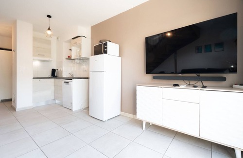 Escape to the sun-soaked shores of Valras-Plage with this inviting 40 m² villa, perfectly suited for up to 6 guests. With 2 cozy bedrooms and a prime location just 450 meters from the beach, this property offers the ideal blend of seaside relaxation and everyday convenience. A nearby restaurant (600 m) and supermarket (1 km) make dining and shopping effortless. Step outside into your private garden, enjoy meals on the furnished terrace, or fire up the barbecue for a laid-back evening under the stars. Inside, the villa is equipped with air conditioning, electric heating, an iron, and access to a communal heated swimming pool. Open-air parking within the building ensures easy arrivals and departures. The open-plan electric kitchen is fully stocked with everything you need: refrigerator, microwave, dishwasher, coffee machine, toaster, kettle, and all the essential dishes and utensils. Whether you're whipping up a quick breakfast or a leisurely dinner, this villa makes every moment of your holiday feel effortless and enjoyable. Address: Avenue des Pattes Rouges, 34410 Valras-Plage, Languedoc-Roussillon Welcome to your coastal home away from home.