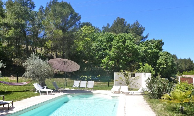 This 4-bedroom house was built in 2005 between pine trees and vineyards on a tree-filled site and offers a 9x4-m swimming pool. The villa can host 9 people. It is really peaceful and surrounded by nature, close to Luberon National Park. To go to Aix-en-Provence, one of the most wonderful cities in southern France, you will need to go for a 10-minute drive. This place is an ideal rental for two families. The swimming pool is heated and fenced.