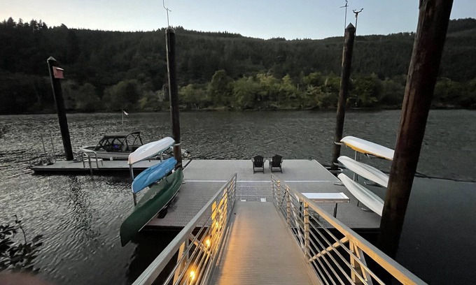 Welcome to our vintage riverfront cottage located steps from the Siuslaw river and our deep water dock. Located in a forested river valley, we have amazing views and a diverse variety of wildlife. The cottage has been tastefully renovated with shiplap interior walls, updated electrical, plumbing and windows while restoring most of the historical features.