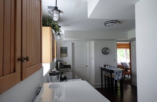 Originally a guest cottage, it does sit behind the main house and requires a short walk on its own private access to its own private dock. The dock overlooks a couple of marinas on the quiet protected waters off of the South River. It is equipped with a boat lift and jet ski lift which is available to the avid boater, if they so choose. Because the property is so close to the South River, it is a short boat ride to Thomas Point Light House, downtown Annapolis, and a variety of boat up restaurants. The house comes with two kayaks which is an excellent way to explore the back waters. The dock is a wonderful spot to fish, crab and even swim. The evening sunsets enjoyed from either the large house deck or on the boat dock are magical.