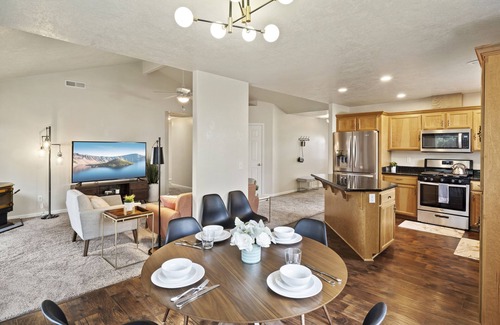 Stay and unwind in a beautiful and spacious home with brand new furnishings in a quiet neighborhood that’s perfectly located mere minutes away from plenty of shopping, dining and entertainment. Whether you are visiting Southern Oregon to enjoy the Britt and Shakespeare festivals or going to see Crater Lake and other beautiful sights or even if you are just in the area for work, this house is the perfect choice.