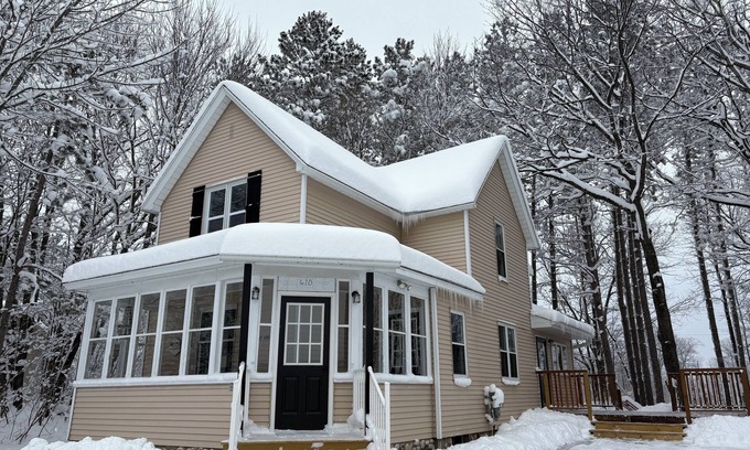 This recently renovated 1920's home provides a convenient site for enjoyment of the outdoor activities with an unbeatable 200 yard walk away from the new high speed chair lift at Jackson Creek Summit. After skiing, warm up in the brand new 6 person electric steam Finnish built cedar sauna. Enjoy the modern amenity of the gas fireplace in this elevated style of home featuring the mixture of new furniture with handpicked period pieces. Return to a family-sized kitchen and dining room where you can comfortably seat your whole group. Then retreat to one of five PRIVATE bedrooms; each sleeps 2 people. All bedrooms have new mattresses & bedding, mirrors, plug ins, and doors. There are 2 bathrooms each with a shower, featuring an on-demand water heater that never runs out of hot water for your shower. In the evenings, enjoy WIFI TV & movies, boardgames, the shot ski, or evening hikes around the Snowriver Resort which features bars, restaurants, shopping at the chalet, and entertainment. We welcome you to our ski home, this is not a typical rental, because it is actually a family cabin. It's independently owned, not run by a big corporation. You will not find open concept lofts packed with multiple twin beds and no privacy. Experience what winter has to offer with a stay at our house.