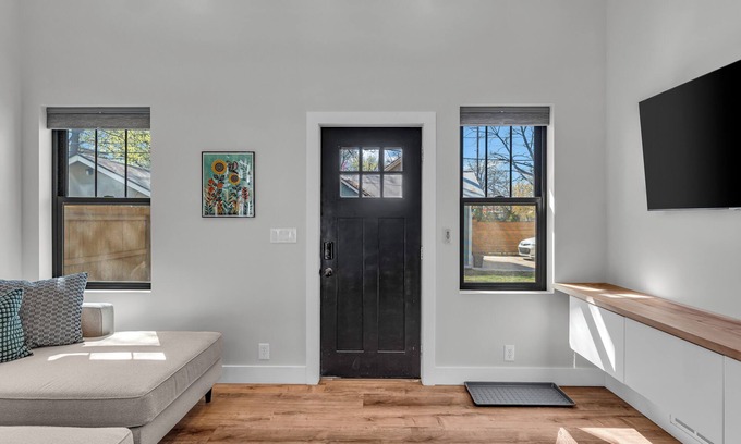 Charmingly Stylish 1-bed Loft Apt! Wonderful Lawrence Barker neighborhood is located in Lawrence. Charmingly Stylish 1-bed Loft Apt! Wonderful Lawrence Barker neighborhood provides accommodation, featuring Bedding/Linens, Fireplace/Heating, Parking, among other amenities. This Apartment features Bedding/Linens, Fireplace/Heating, Parking, to make your stay a comfortable one.