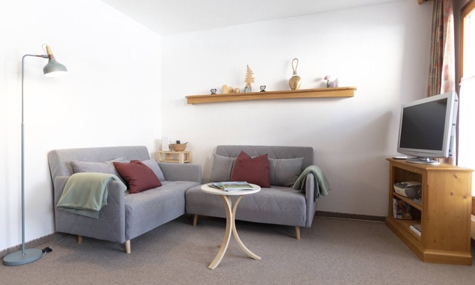 Chasa Grusaida: Charming, cosy 2-room flat with balcony near the golf course is located in Vulpera. Chasa Grusaida: Charming, cosy 2-room flat with balcony near the golf course provides accommodation, featuring Child Friendly, Kitchen, TV, among other amenities. This Apartment features Child Friendly, Kitchen, TV, to make your stay a comfortable one.
