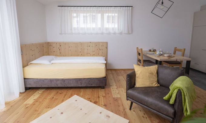 Bainvgnü e Allegra illa Val Müstair! Enjoy the most beautiful time of the year in the UNESCO Biosphere Reserve Val Müstair and let yourself be spoilt by the only Swiss National Park with its unspoilt nature and cultural offerings in Val Müstair. The Chasa Helvetia in Müstair was built in 2023 and opens up a new offer for guests in Val Müstair. Enjoy the peace and freedom of a serviced flat. You can choose whether to book the flat with or without hotel service.Studio" facilities:- free WLAN- Living room and bedroom with Swiss stone pine furniture and 160x200 cm box-spring bed- Smart TV with Swisscom TV- Bathroom with washbasin, shower, WC- Kitchen equipped with new appliances: Induction cooker, dishwasher, oven, steam extractor and Nespresso coffee machine- balcony- car park- Fondue set and raclette oven for hire- A high chair and cot are also included in the price and can be provided.- A laundry room with washing machine and tumble dryer is available to guests- Storage space for bikes, skis availableThe Chasa Helvetia was newly built and furnished with high-quality local materials. Surrounded by the Val Müstairn UNESCO Biosphere Reserve and within walking distance of the UNESCO World Heritage Site of St. John's Monastery in Müstiar, you have the best opportunity to go on a discovery tour, be it in nature or when visiting a museum or a local producer in the region. The use of the PostBus, which takes you through the valley, is included in the guest card and makes it easy to plan tours for hikes, ski tours or museum visits.You can benefit from various additional hotel services before or during your stay, which can be booked separately:- Breakfast- half board- Massage offer in the spaShopping facilities and the PosAuto bus stop are in the immediate vicinity, about 10 minutes' walk away. Pure nature: Nestled in the fascinating mountain world of the Grisons Alps, Val Müstair is a paradise for nature lovers. Explore the idyllic villages, hike along secluded paths and mountain peaks, or go on a mountain bike tour along picturesque trails. In winter, the valley transforms into a winter wonderland and invites you to go skiing, cross-country skiing and snowshoeing.Experience culture: Val Müstair looks back on a long and eventful history. Numerous historical buildings, such as the St. Maria Val Müstair monastery, a UNESCO World Heritage Site, bear witness to the region's rich past. Visit the museums, immerse yourself in local traditions and enjoy the culinary specialities of the valley.Activities and excursion destinations: There is something for everyone to discover in Val Müstair. Whether hiking, biking, climbing, horse riding or simply relaxing in nature - you will find the perfect leisure activity here. Visit the Zernez National Park, take a trip to the nearby Vinschgau Valley or explore the charming villages of the valley.Val Müstair - a holiday paradise for the whole family: Families with children are very welcome in Val Müstair. Numerous child-friendly activities and excursion destinations ensure unforgettable holiday moments.