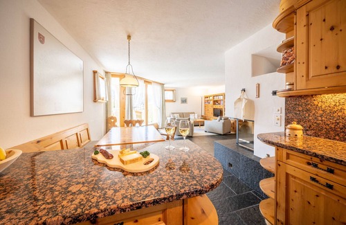 Hello and welcome to the Chasa Munt Plan - Welcome to the cozy 3 ½-room apartment with a wonderful view of the Lower Engadine Dolomites. The apartment is located in Ftan Sainas, directly next to the cross-country ski trail and the children's ski area Ftan, as well as the ski bus. The Ftan-Prui chairlift is easily accessible on foot or by ski bus from Ardez-Ftan.Ftan is located on a sun-drenched plateau, away from the hustle and bustle. On the opposite side of the valley, the Lower Engadine Dolomites rise dominantly behind Tarasp Castle, embedding the village in an alpine picture-book landscape. The 400-year-old Alpine Mill of Ftan tells of the once-rich grain culture. The Ftan-Prui chairlift quickly and reliably takes you up the mountain and directly to the Motta Naluns snow sports area in winter. The children's area with magic carpet makes it easier for beginners to start skiing, and this is located directly opposite the apartment. The toboggan run between Prui and Ftan also offers pure snow fun for both big and small.In the friendly and cozy apartment (approx. 80 m2), one can fully enjoy the vacation. From the living room with a large dining table with corner bench, exposed beams and from the windows and the adjacent terrace (with stone table and grill) facing west, one has a great view of the Lower Engadine Dolomites. The kitchen-living area is equipped with a dishwasher, oven, glass-ceramic cooktop and refrigerator with large freezer compartment. In the living room, the fireplace is the highlight for cozy hours by the crackling fire.The approx. 80 m2 large apartment is located on the 1st floor of a multi-family house with a sunny seating area and a view. The ski bus stop Ardez-Ftan is only a few minutes' walk away. The cross-country ski trail and the children's area with magic carpet are located directly in front of the front door. You can conveniently reach the village center with restaurants and shopping opportunities on foot.Enjoy the most beautiful time of the year in Ftan and let yourself be conquered by the unique natural and cultural landscape. Enjoy a cozy walk through the old district, relax at Lake Ftan, in the bath and sauna landscape of Bogn Engiadina, or take one of the countless hikes in the Swiss National Park and enjoy the family ski area Motta Naluns in winter.The guest card of the Engadin Scuol holiday region is included in every booking for all guests.With this, you can use for free:- the Rhaetian Railway from Scuol-Tarasp - Zernez in 2nd class- all PostAuto routes (except S-charl) in the Lower Engadine region- daily mountain and valley ride with the Scuol cable car or the Ftan cable car in the summerIn addition, you benefit from exclusive offers from our partners, including reduced admission to Engadin Bad Scuol, discounted Veina tickets, and numerous special offers in restaurants, sports clubs, museums, shops, and local products.Our concierge service is available to you throughout your entire stay, we will recommend the best excursions, book your ski instructor, or a discounted spot in the Roman-Irish Bath.