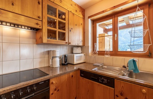 The over 80 m2 large apartment is located on the ground floor with a sunny terrace and adjacent play meadow with breathtaking views of the Lower Engadine Dolomites and the Swiss National Park. The apartment is situated in the upper village area of Scuol in a quiet neighborhood without through traffic.The guest card of the Engadin Scuol holiday region is included in every booking for all guests.With this, you can use for free:- the Rhaetian Railway from Scuol-Tarasp - Zernez in 2nd class- all PostAuto routes (except S-charl) in the Lower Engadine region- daily mountain and valley ride with the Scuol cable car or the Ftan cable car in the summerIn addition, you benefit from exclusive offers from our partners, including reduced admission to Engadin Bad Scuol, discounted Veina tickets, and numerous special offers in restaurants, sports clubs, museums, shops, and local products.Our concierge service is available to you throughout your entire stay, we will recommend the best excursions, book your ski instructor, or a discounted entry to the Bogn Engiadina.The apartments were awarded the IBEX FAIRSTAY Certification, which means they meet strict standards for sustainability, comfort, and hospitality.Apartment Equipment- free WiFi- Living room with TV & radio and sofa bed- 1 bedroom with double bed (180 cm)- 1 bedroom with two single beds (2×90 cm)- The living room is fitted with parquet, the bedrooms with carpet flooringKitchen with dishwasher, extractor hood, glass ceramic hob, Nespresso coffee machine andElectric kettle- Also fondue set and raclette oven, the refrigerator has a separate freezer compartment- Bad, Shower/Toilet and separate Shower/Toilet- a laundry room with washing machine and dryer for shared use- Parking space in garage included-Community Ski and Bike Basement