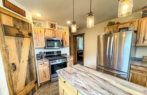 Step outside to direct access to UTV/ATV and snowmobile trails, or spend your day fishing, kayaking, or boating on nearby lakes. Feel free to explore with a short hike on the property trails where you can catch a glimpse of Chase Creek. After exploring, relax on the large wraparound deck, grill with friends, or unwind in the cozy great room.