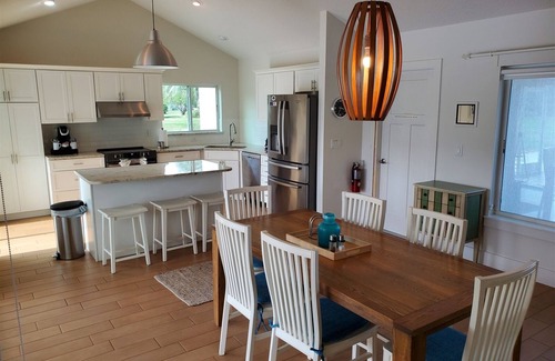 Fully equipped kitchen with upgraded appliances and illuminated island