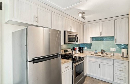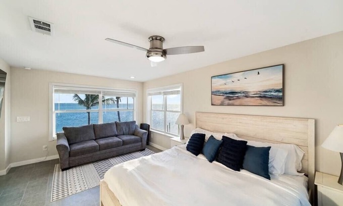 This place is the ultimate waterfront getaway. Located right on the Banana River, you will have access to the river the beach right across the street. The villas are beautifully renovated inside and out. Chasing Pelicans is a tastefully decorated Villa overlooking the river. This one bedroom, one bathroom has a living space with a 65-inch smart TV. The kitchen is stocked with new appliances and all the cookware you will need to live comfortably during your stay.