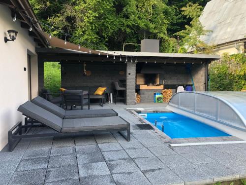 Chata Čaks is a recently renovated chalet in Nižný Klátov where guests can make the most of its rooftop pool, open-air bath, and garden. This property offers access to a terrace and free private parking. On clear days, guests can head outside to enjoy the chalet's outdoor fireplace or simply kick back and relax. With free Wifi, this 1-bedroom chalet provides a flat-screen TV, a washing machine, and a fully equipped kitchen with a dishwasher and oven. Guests can enjoy an ambient stay in their soundproof room with parquet floors and a fireplace. For added privacy, the accommodation features a private entrance. During the colder months, guests can enjoy winter sports in the surrounding area. Steel Arena is 7.2 miles from the chalet, while Cathedral of St. Elizabeth is 8 miles away. Kosice International Airport is 10 miles from the property.