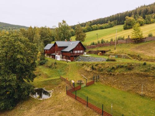 Featuring a swimming pool, a garden, a shared lounge and views of the garden, Chata Říp is located in Rokytnice nad Jizerou and provides accommodations with free WiFi. The lodge provides guests with a terrace, mountain views, a seating area, cable flat-screen TV, a fully equipped kitchen with a fridge and a dishwasher, and a private bathroom with shower and free toiletries. An oven, a microwave and toaster are also provided, as well as an electric tea pot. There's a a playground and a grill at this property and guests can go skiing and cycling nearby. Szklarki Waterfall is 17 miles from Chata Říp, while Kamienczyka Waterfall is 17 miles away. Pardubice Airport is 64 miles from the property.