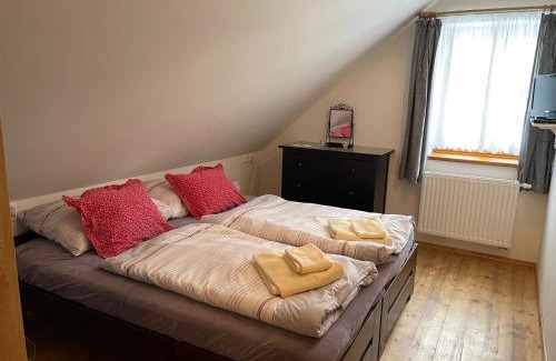 Featuring a garden, Chata Dorotka Kvilda offers accommodations in Kvilda. This property offers access to a patio, free private parking, and free Wifi. The property features barbecue facilities and outdoor furniture. The apartment provides guests with a terrace, a seating area, a flat-screen TV, a fully equipped kitchenette with a microwave and a toaster, and a private bathroom with shower and a hair dryer. A fridge, a stovetop, and kitchenware are also offered, as well as a coffee machine and a kettle. At the apartment complex, units include bed linen and towels. Skiing and cycling are possible within the area, and Chata Dorotka Kvilda offers ski storage space. Ceske Budejovice Airport is 50 miles from the property.