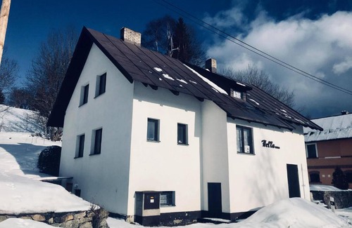 Chata Hella in Pernink provides accommodation with free WiFi, 16 km from Fichtelberg, 23 km from Mill Colonnade and 23 km from Market Colonnade. Featuring free private parking, the chalet is in an area where guests can engage in activities such as hiking and skiing. The chalet consists of 4 bedrooms, a kitchenette with dining area, and 2 bathrooms with shower. Towels and bed linen are featured. A barbecue and ski storage space can be found at the chalet, along with a garden. Hot Spring is 23 km from Chata Hella, while German Space Travel Exhibition is 37 km away. The nearest airport is Karlovy Vary International Airport, 29 km from the accommodation.