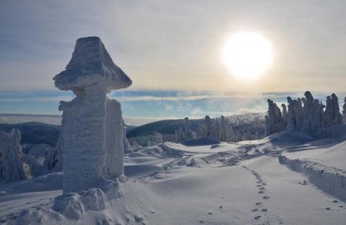 Chata Jiriho na Seraku has a garden, shared lounge, a terrace and restaurant in Bělá pod Pradědem. 19 miles from Museum of Paper Velké Losiny and 24 miles from Praděd, the property provides ski-to-door access, as well as a bar. The property has a kids' club, room service and organizing tours for guests. At the hotel, rooms include a desk. A buffet breakfast is available at Chata Jiriho na Seraku. Guests at the accommodation will be able to enjoy activities in and around Bělá pod Pradědem, like hiking, skiing and cycling. Pardubice Airport is 80 miles from the property.