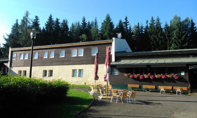 Set in Krušné Mountains, Chata Lesanka is only 50 metres from the ski slopes and offers an outdoor swimming pool, a relaxation area, free private parking and free WiFi. All rooms are functionally furnished and feature a TV and a private bathroom with shower. The Lesanka restaurant offers traditional Czech cuisine and the garden offers a fire pit and barbecue facilities. Chata Lesanka offers a massage centre and a common room with satellite TV, a VCR and a DVD player, a pool table and darts. Guests can also make use of a tennis court, a children's playground. The Marianská Bus Stop is 100 metres from the property, and Klinovec Ski area is 9 km away. Restaurants and grocery stores are 4 km away.