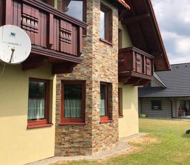 16 miles from Orava Castle in Námestovo, chata ORAVSKA priehrada provides accommodations with access to a steam room. This vacation home offers free private parking and a shared kitchen. On clear days, guests can head outside to enjoy the vacation home's outdoor fireplace or simply kick back and relax. Offering a balcony and mountain views, the spacious vacation home includes 4 bedrooms, 5 living rooms, satellite flat-screen TV, an equipped kitchen, and 2 bathrooms with a shower. Towels and bed linen are featured in the vacation home. There's also a seating area and a fireplace. Guests can make the most of the warm weather with the property's barbecue facilities. For guests with children, the vacation home features both an indoor and outdoor play area. Chata ORAVSKA priehrada has both a sun terrace and garden to relax in after a busy day, along with water sports facilities. Gubalowka Mountain Train Station is 26 miles from the accommodation, while Zakopane Railway Station is 29 miles away. Poprad-Tatry Airport is 78 miles from the property.