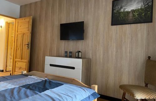 Featuring free bikes, Chata pod Groniem provides accommodations in Skawica. This property offers access to a balcony and free private parking. The chalet offers an infinity pool with a fence, as well as a sauna and a shared kitchen. Offering a terrace and mountain views, the spacious chalet includes 4 bedrooms, a living room, flat-screen TV, an equipped kitchen, and 3 bathrooms with a bath and a shower. The comfortable, air-conditioned accommodation also comes with soundproofing and a fireplace. For added privacy, the accommodation features a private entrance. For guests with children, the chalet features indoor and outdoor play areas. Guests can also warm up near the outdoor fireplace after a day of cycling. John Paul II International Kraków–Balice Airport is 40 miles from the property.
