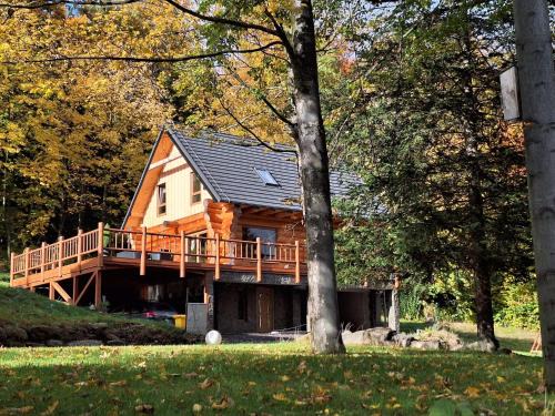 Offering a garden, Chata pod Olbrzymami offers accommodations in Zachełmie. This property offers access to a balcony, darts, free private parking, and free Wifi. The villa provides an outdoor fireplace and a 24-hour front desk. Providing a terrace and mountain views, the villa includes 3 bedrooms, a living room, satellite flat-screen TV, an equipped kitchen, and 2 bathrooms with a walk-in shower and a bath. The parquet floors, fireplace, and peaceful vibe add to the ambience of the room. The property has an outdoor dining area. Guests can make the most of the warm weather with the property's barbecue facilities. Guests at the villa will be able to enjoy activities in and around Zachełmie, like hiking and walking tours. Skiing and cycling can be enjoyed nearby, while a bicycle rental service and ski storage space are also available on-site. Wang Church is 11 miles from Chata pod Olbrzymami, while Dinopark is 11 miles away. Copernicus Wrocław Airport is 72 miles from the property.
