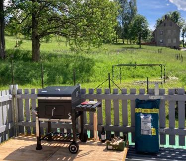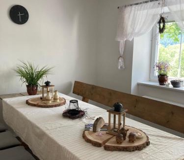Featuring a garden, Chata Pod Vysokým kamenem provides accommodations in Vejprty. This property offers access to darts, free private parking, and free Wifi. The vacation home has ski storage space. Providing a terrace with garden views, this vacation home also provides guests with a satellite flat-screen TV, a well-equipped kitchen with a microwave, a fridge, and a minibar, as well as 1 bathroom with a shower and slippers. The property has an outdoor dining area. A water park is available on-site, and both skiing and cycling can be enjoyed close to the vacation home. Fichtelberg is 10 miles from Chata Pod Vysokým kamenem, while Hot Spring is 26 miles away. Karlovy Vary International Airport is 29 miles from the property.