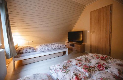 Chata pri 7 jazerách s vyvýšenou terasou is a recently renovated chalet in Štiavnické Bane where guests can make the most of the barbecue facilities and shared lounge. This property offers access to a balcony, free private parking, and free Wifi. The accommodation offers a shared kitchen and private check-in and check-out for guests. Offering a terrace and mountain views, the spacious chalet includes 2 bedrooms, a living room, satellite flat-screen TV, an equipped kitchen, and 1 bathroom with a shower. Towels and bed linen are featured in the chalet. There's also a seating area and a fireplace. Guests at the chalet will be able to enjoy activities in and around Štiavnické Bane, like cycling. Guests can also warm up near the outdoor fireplace after a day of skiing. Kremnica Town Castle is 31 miles from Chata pri 7 jazerách s vyvýšenou terasou, while The Church of St. Catherine is 3.6 miles away.