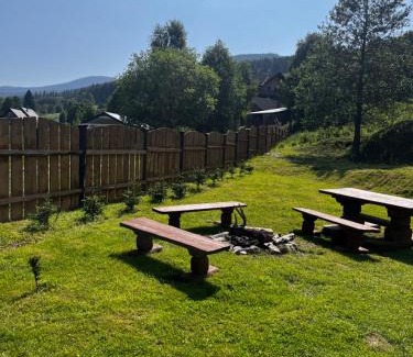 Offering a garden, Chata Rafusa pod Śnieżnikiem offers accommodations in Stronie Śląskie. This property offers access to a terrace, free private parking, and free Wifi. Polanica Zdroj Train Station is 27 miles away and Złoty Stok Gold Mine is 19 miles from the vacation home. The vacation home consists of 2 bedrooms, a living room, a fully equipped kitchenette with a dishwasher and a coffee machine, and 1 bathroom with a shower and a hair dryer. Towels and bed linen are featured in the vacation home. For added privacy, the accommodation features a private entrance. Guests at the vacation home will be able to enjoy activities in and around Stronie Śląskie, like hiking and walking tours. Guests can also warm up near the outdoor fireplace after a day of skiing. Polanica Zdrój Mineral Water Pump Room is 28 miles from Chata Rafusa pod Śnieżnikiem, while Museum of Paper Velké Losiny is 29 miles away.