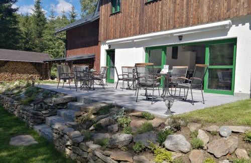 A good location for a stress-free holiday in Železná Ruda, Chata Rozhlas is an apartment surrounded by views of the garden. The property features a garden, barbecue facilities, and parking on-site among other facilities. The accommodation offers free Wifi, as well as a terrace and a family-friendly restaurant. At the apartment complex, units are equipped with a wardrobe, a flat-screen TV, a private bathroom, bed linen, and towels. Rooms are equipped with a kettle, while selected rooms also offer a fully equipped kitchen with a dishwasher and an oven. At the apartment complex, units are fitted with a seating area. There is an on-site coffee shop. Sightseeing tours are available in the vicinity. Skiing, cycling, and hiking are possible within the area, and the apartment offers ski storage space. Ceske Budejovice Airport is 74 miles from the property.