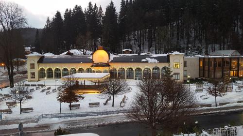 Featuring garden views, Chata - Srub Kašparáci in Janske Lazne offers accommodations, a garden, barbecue facilities, and a shared lounge. This guest house provides free private parking and a shared kitchen. The guest house features mountain views, a sun terrace, and free Wifi is available throughout the property. At the guest house, units are fitted with a desk and a flat-screen TV. At the guest house, all units are allergy-free. At the guest house, each unit has bed linen and towels. Sightseeing tours are available close by. Skiing and hiking can be enjoyed nearby, while ski-to-door access and ski storage space are also available on-site. Bus Stop Strážné is 15 miles from the guest house, while The Grandmother's Valley is 23 miles from the property. Pardubice Airport is 55 miles away.