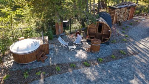 Featuring a garden, Chata u Borata features accommodations in Żuromino. This beachfront property offers access to free Wifi and free private parking. Guests can use the spa and wellness center with a sauna and hot tub, as well as free bikes. Providing a terrace and garden views, the vacation home includes 4 bedrooms, a living room, flat-screen TV, an equipped kitchen, and 1 bathroom with a hot tub and a shower. Towels and bed linen are provided in the vacation home. There's also a seating area and a fireplace. A mini-market is available at the vacation home. For guests with children, the vacation home provides outdoor play equipment. Skiing, cycling, and fishing are possible within the area, and Chata u Borata offers a private beach area. Train Station is 26 miles from the accommodation. Gdańsk Lech Wałęsa Airport is 27 miles away.