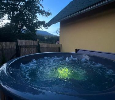 Offering a garden, Chata U lesa offers accommodations in Svoboda nad Úpou. This property offers access to a balcony, free private parking, and free Wifi. Guests can use the spa and wellness center with a hot spring bath, hot tub, and open-air bath, as well as a seasonal outdoor swimming pool. Featuring pool and garden views, this chalet provides 1 bedroom and opens to a patio. Providing a terrace with mountain views, this chalet also provides guests with a cable flat-screen TV, a well-equipped kitchen with a dishwasher, an oven, and a microwave, as well as 1 bathroom with a hot tub and bathrobes. There's also a seating area and a fireplace. Guests can make the most of the warm weather with the property's barbecue facilities. Skiing and hiking are possible within the area, and the chalet offers ski storage space. Bus Stop Strážné is 17 miles from Chata U lesa, while The Grandmother's Valley is 22 miles away. Pardubice Airport is 54 miles from the property.