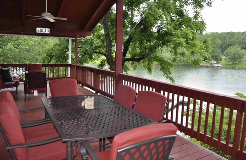 The fully equipped kitchen has everything you need to have a chef’s cooking experience. Granite counter tops with seating to share family conversations while preparing your favorite food or beverages before heading to the large front porch. There, you can relax with a view of the lake with plenty of seating and a gas grill.